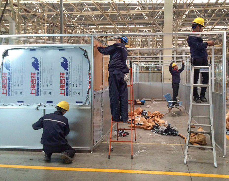 鋁合金隔斷是工廠、車間、辦公室等場合分隔不同工作區域,規劃、改善工作環境的方式,使用鋁合金框架為裝飾和固定材料,將玻璃或各種板材安裝在鋁合金框架內,達到隔墻的效果。拆裝方便,美觀環保。