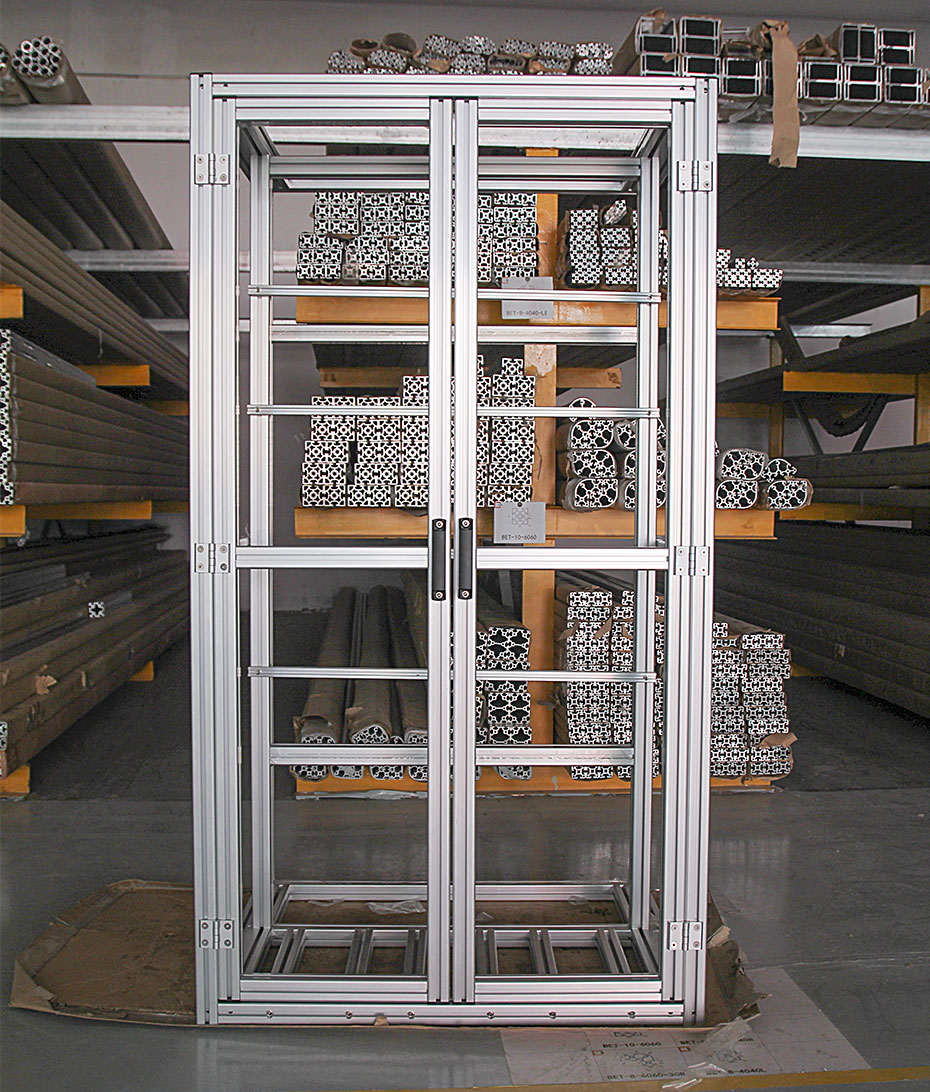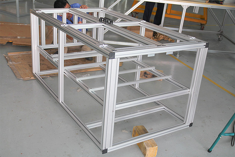工業鋁型材框架,是由工業鋁型材和專用工業鋁型材配件連接所組成的萬用系統框架的統稱。連接強度高,承載能力大;表面防腐蝕,造型美觀實用。具有運用范圍廣、施工方便、可擴充性強、裝卸方便等特點。用戶可根據實際需要自由設計、安裝。
