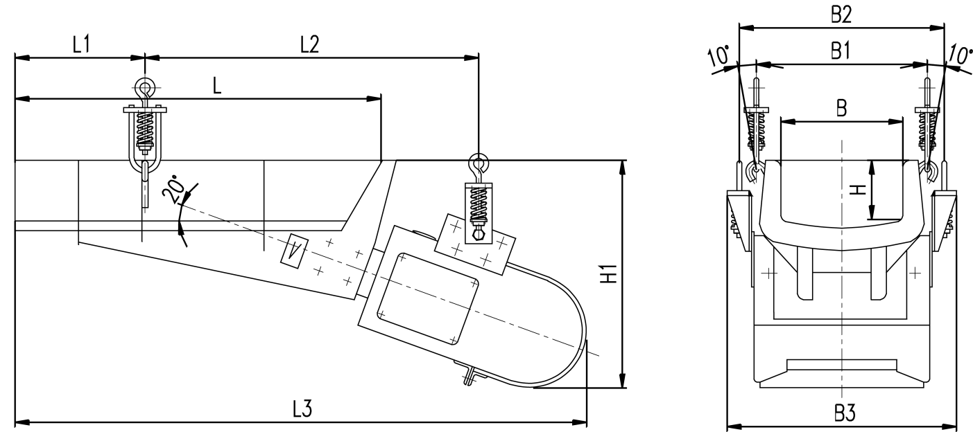 4、由于采用近共振原理,故能耗低。物料在槽內(nèi)呈微拋運(yùn)動(dòng),料槽磨損小;
